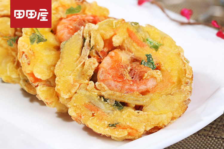 受到日本天婦羅的啟發(fā),田田屋將白對蝦、牛蒡、胡蘿卜、茼蒿、洋蔥等各色蔬菜巧妙配比,經(jīng)過調(diào)味、掛糊、油炸,烹制出風(fēng)味獨(dú)特的米蘭蝦餅,不僅口感酥脆,香味濃郁,更有整顆大蝦鑲嵌其中,令人大感Q彈過癮,新鮮爽口,好吃不膩。